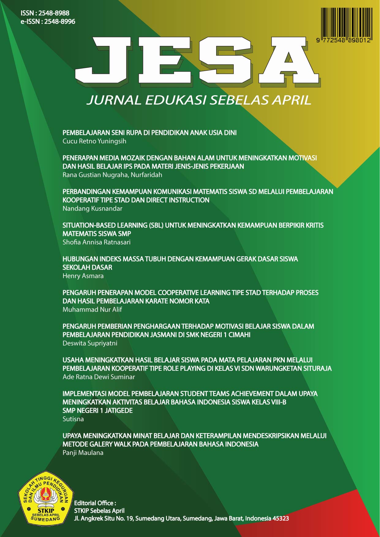 Jurnal Edukasi Sebelas April is a peer-reviewed journal published by LPPM UNSAP & Fakultas Keguruan dan Ilmu Pendidikan (FKIP) UNSAP for information and communication sources for academics (educators), education and learning observers and education practitioners, which is published twice a year in February and August. Articles published are the results of research, reflection, and actual critical studies relating to education and learning. All articles are reviewed by peers at least by two reviewers. The study in this journal covers broad educational dimensions, including: Development and implementation of the education curriculum, Learning and education services, Evaluation of education in general, including the process and results of education, Policy, management and education funding, Quality, education certification and accreditation, Utilization of information and communication technology in education, Model and media in learning, As well as other dimensions related to education.
